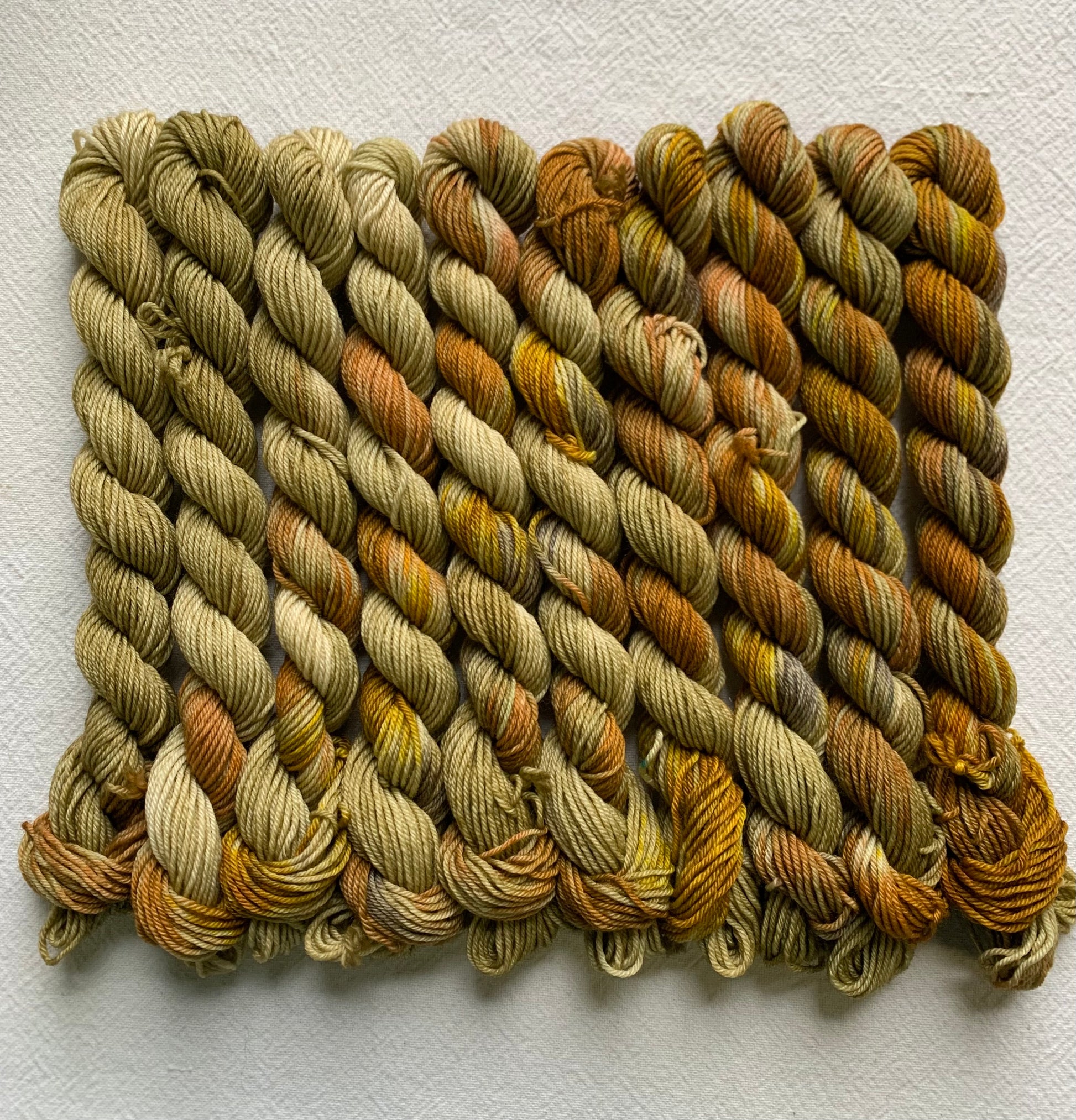 When used in order from one end of the set to the other, skeins will effortlessly change color without you having to blend / alternate / stripe skeins.