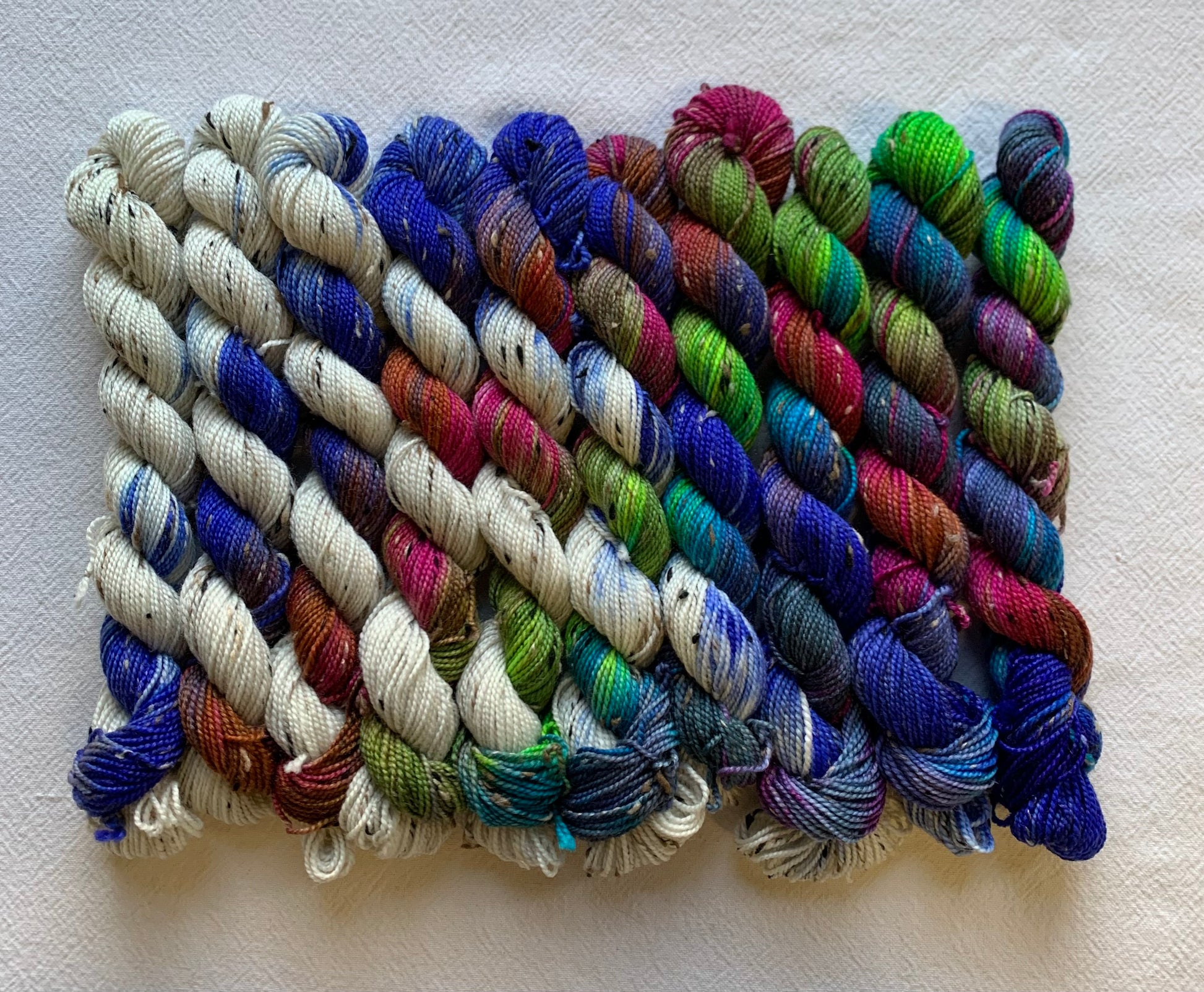 When used in order from one end of the set to the other, skeins will effortlessly change color without you having to blend / alternate / stripe skeins.