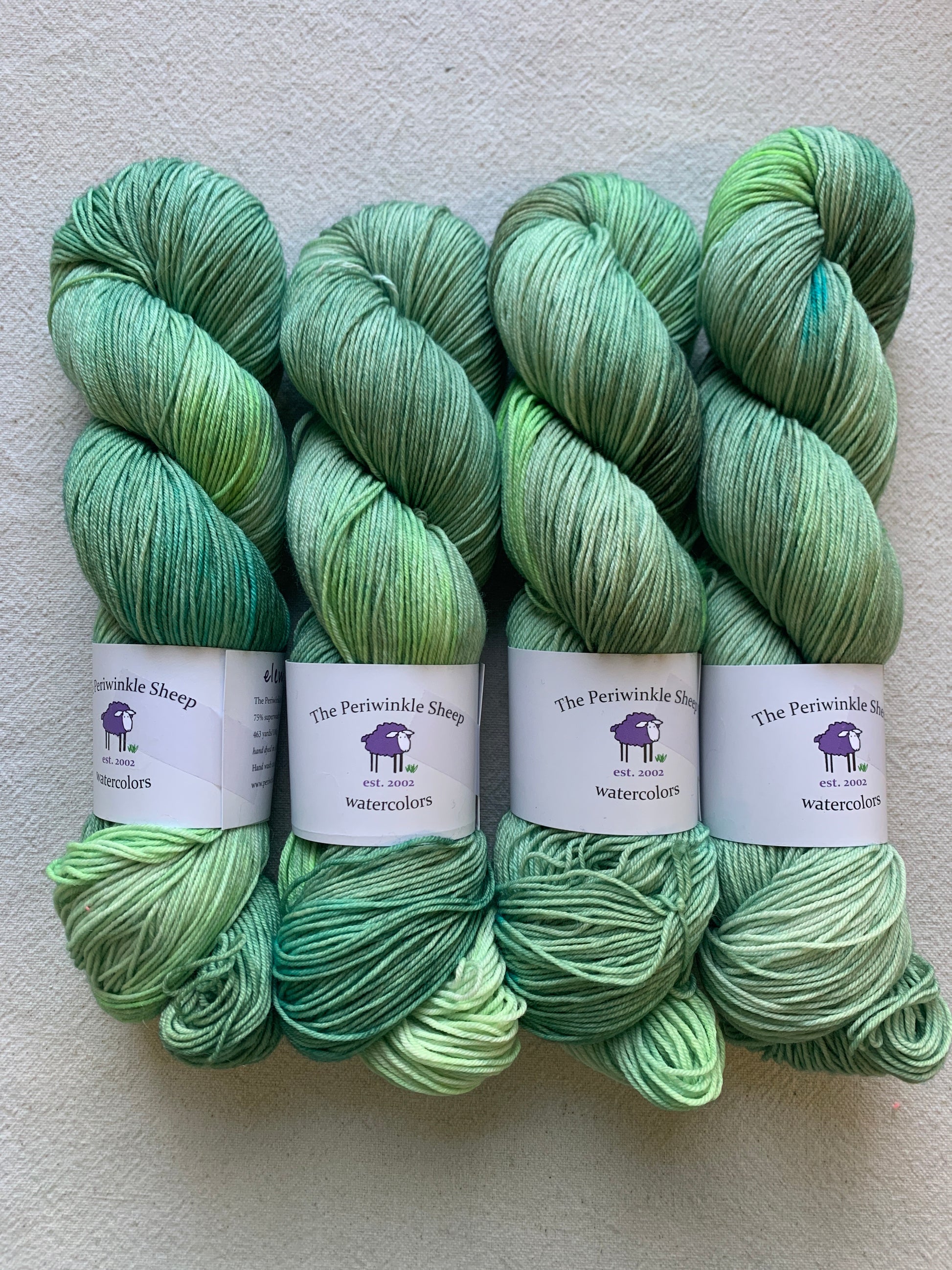 One colorway however will stay the same within the usual variations that come with hand dyed yarn - Points of Light. Here, I applied all the colors I used in the 4 elements colorways to make a multi-colored, fun colorway that plays well with a lot of the semisolids.